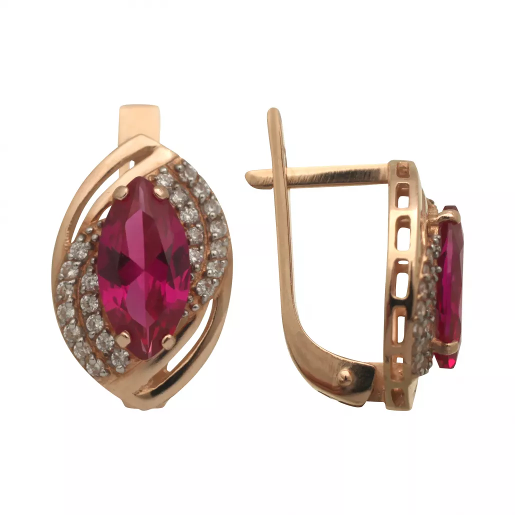 Серьги с фианитом и корундом из золота Артикул: 114306 кор