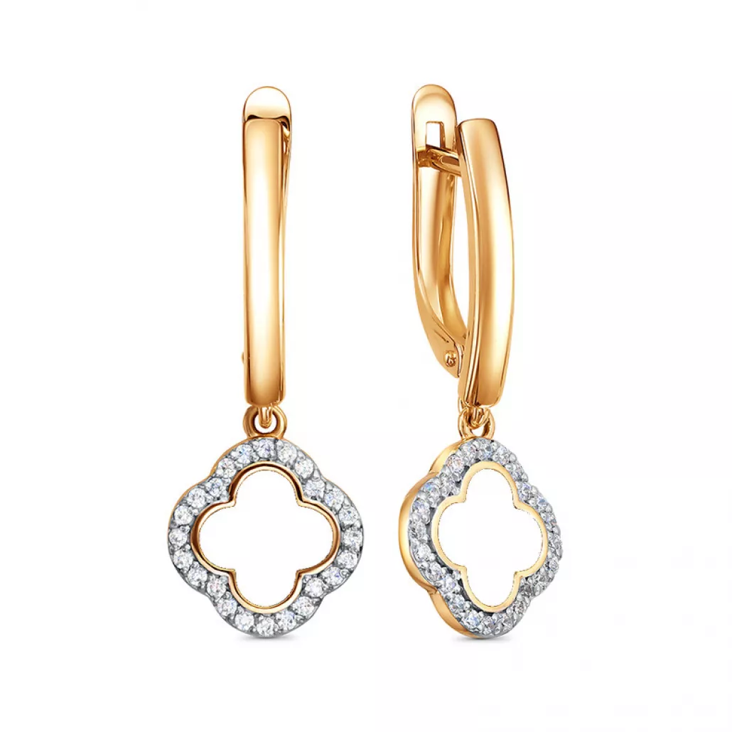 - Серьги с фианитом и эмалью из золота