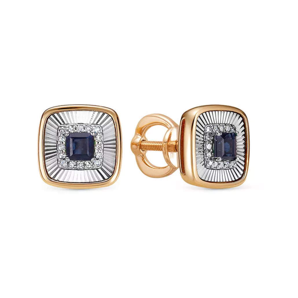 Пусеты с бриллиантами с сапфиром из золота