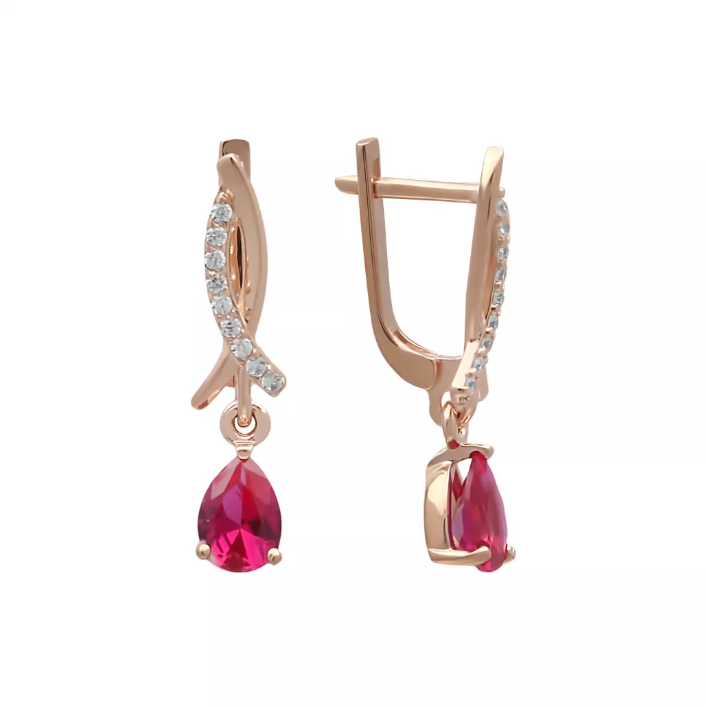 Серьги с корундом и фианитом из золота Артикул: 114069 кор