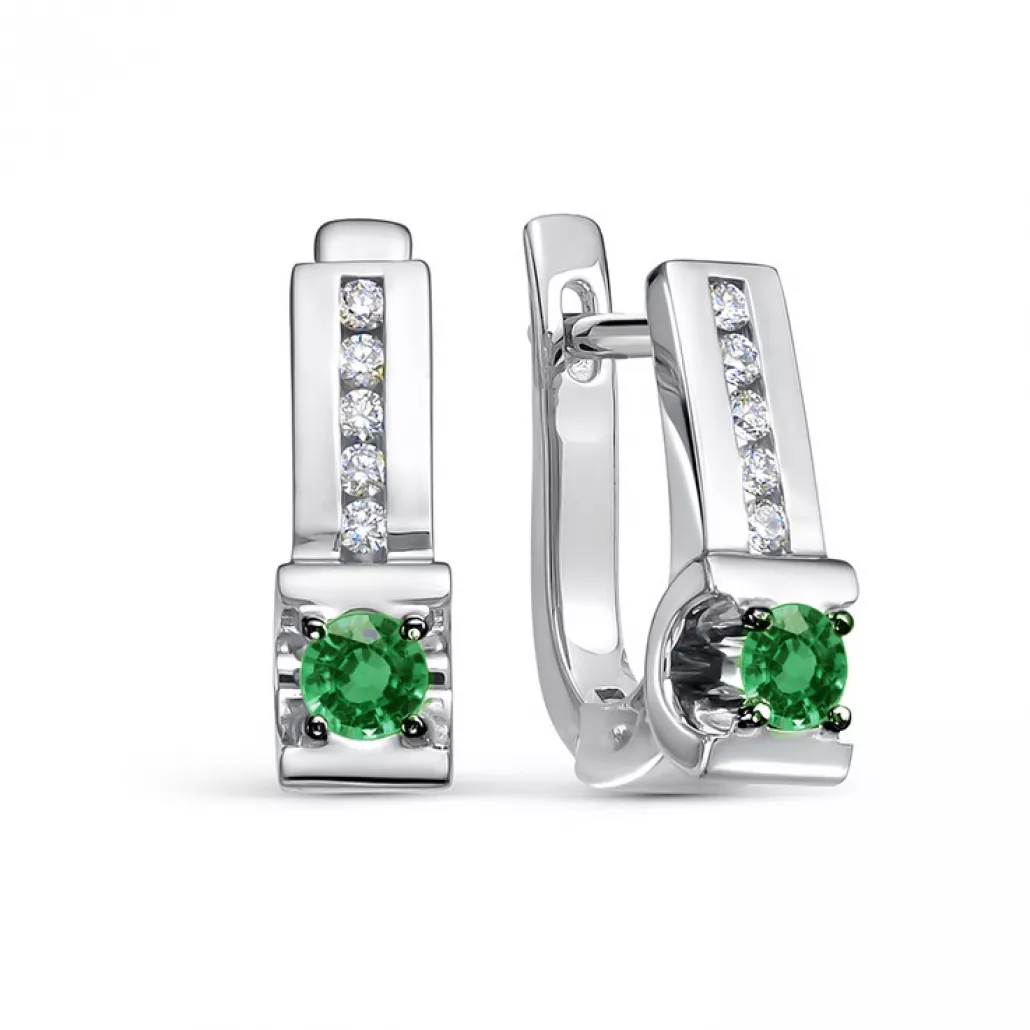 Серьги с бриллиантами с изумрудом из золота Артикул: 2037-21101