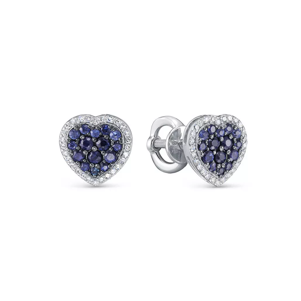 - Пусеты с бриллиантами с сапфиром из золота