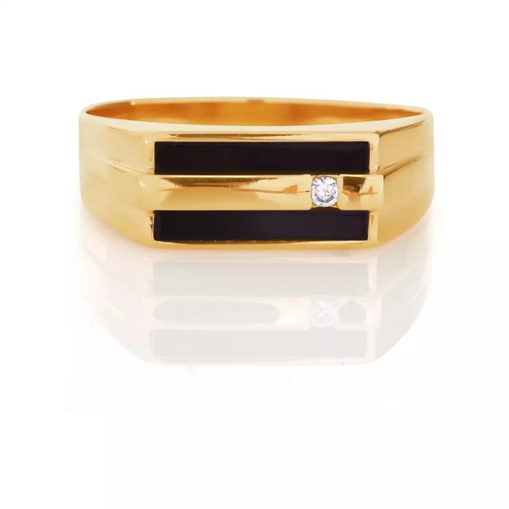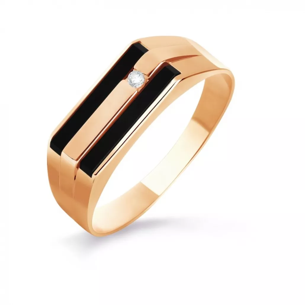- Кольцо-печатка с фианитом и ониксом из золота